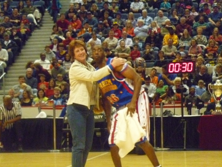 Sally was selected to perform a skit with the Globetrotters - Center court
