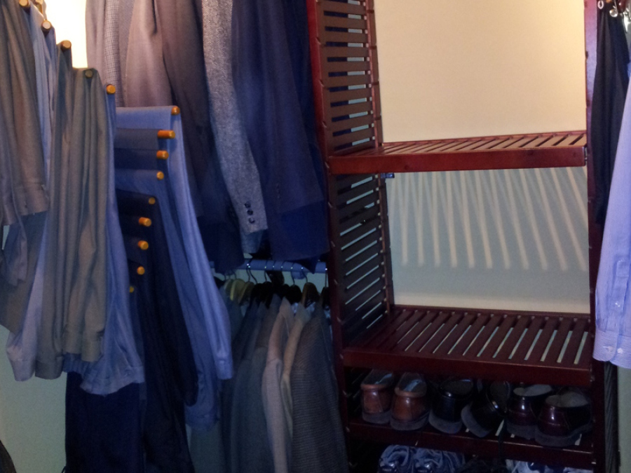 Picked up these closet kits on ebay for half price. These are John Lewis Closets aka Allen and Roth at Lowes. John Lewis was selling seconds on ebay for half price. Great deal, didn't even find real blemishes. Bough 2 kits for the master bedroom and 2 sets for the closets downstairs.