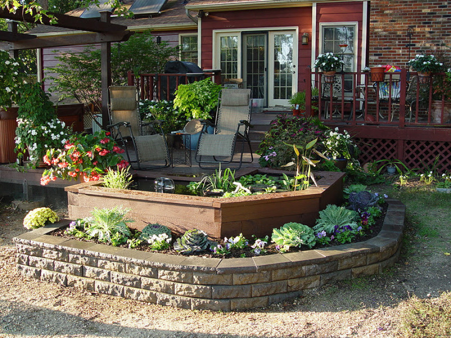 The pond began as an idea for a home to four .29 cent feeder goldfish. The first summer the fish lived in the blue water feature you will see in the photos. The first winter we bought an aquarium so the fish could over winter in the house.
